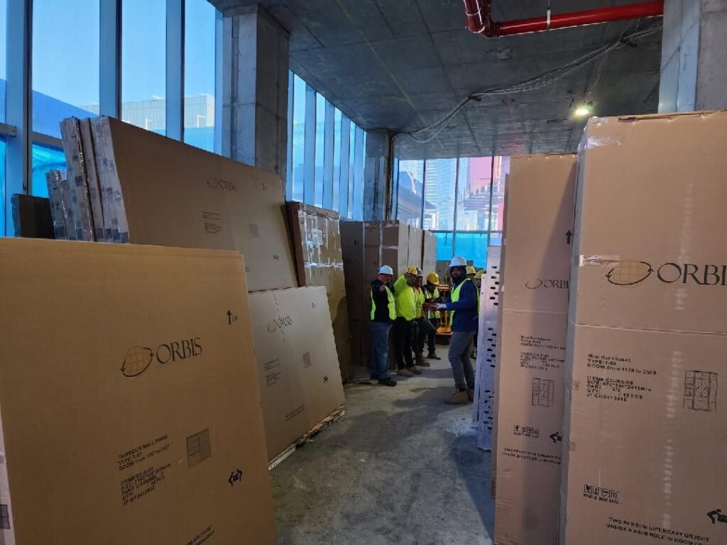 55 Story, spectacular new Marriott Hotel adjacent to the Javits Convention Center at Hudson Yards. OIS is delivering (72) ocean containers of product to the building. In conjunction with ALBCO Tech and our installation partner, Marvel Contracting, we are currently performing 50 Floors of Guestroom Interiors, the Presidential Suites and all Corridors & Elevator Lobbies. Scope consists of Designing, Manufacturing & Installing all Woodwork, Architectural Metal & Glass work, Custom Closets, Mini-Bars, Shelving, Vanities, Headboards, Desk Walls, TV Walls, Wood Paneling, Wood Ceiling Panels, Leather Panels, and Trim. Integral LED lighting systems encased within our assemblies. Includes manufacturing & Installing Custom SS Light Troughs in the ceilings, and Amenities Woodwork / Architectural Metal & Glass work. OIS also manufactured the 2-story SS Column Covers of the 4th floor exterior setback. All Manufacturing & Logistics are being performed in our Shanghai facilities, stored in our NJ Warehousing facility at Port Elizabeth. Reference: Mr. Ed Grunwald, Developer (718) 380-8882 Mr Fitim Lajqi, Construction Manager (718) 860-4731